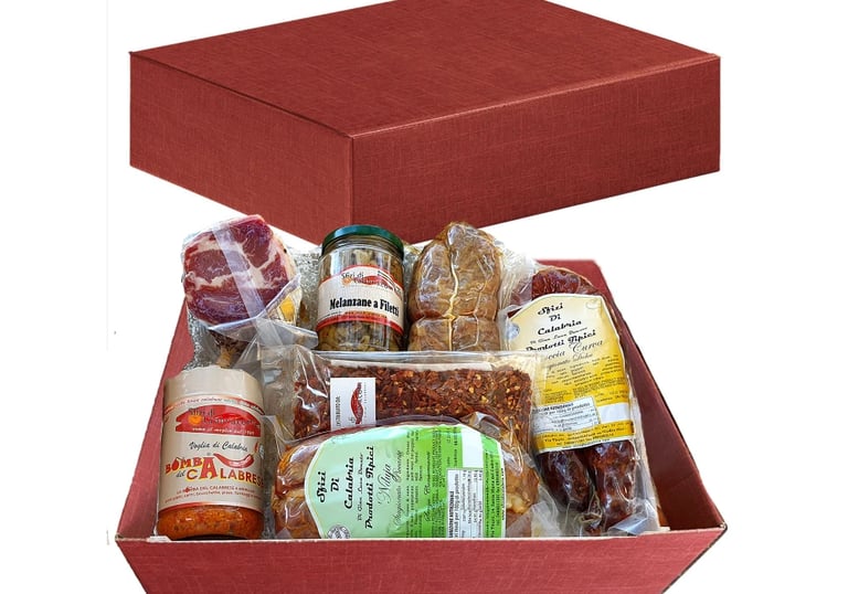 Confezione regalo con prodotti tipici della gastronomia calabrese